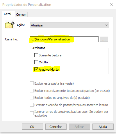 - Atributos: Arquivo Morto (Marcar)