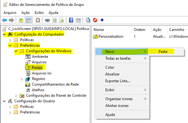 3. Editar GPO para criar pasta na máquina cliente
