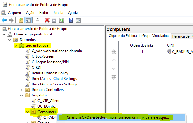 2. Criar GPO fornecendo link na OU dos computadores