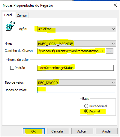 - Nome do valor: LockScreenImageStatus